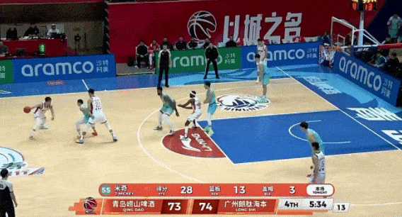 广州对阵南京的比赛。郭艾伦复出。末节比分焦灼阶段,郭艾伦突破到油漆区,用一个陀螺转身过掉防守,左手上篮命中。