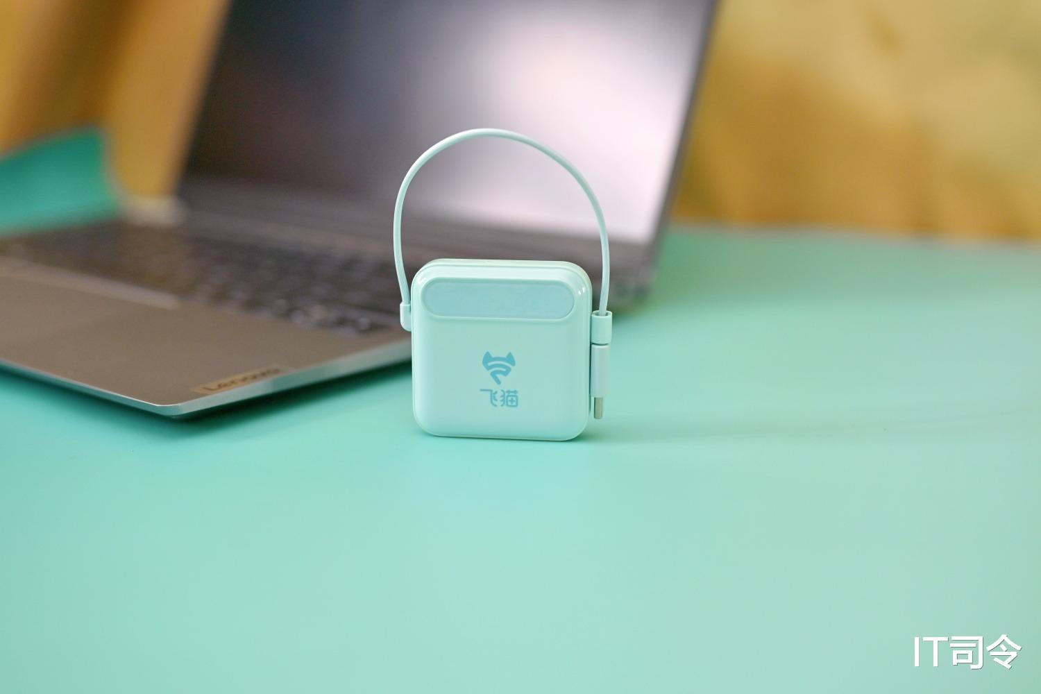 飞猫M2的机身设计很有趣,手袋式的设计让携带更方便,一体式挂绳也是一根数据线,不管是手机、电脑、平板、相机,都可以即插即连。走到哪拎到哪,非常方便。数据线卡在机身上,不用担心乱飞乱甩。