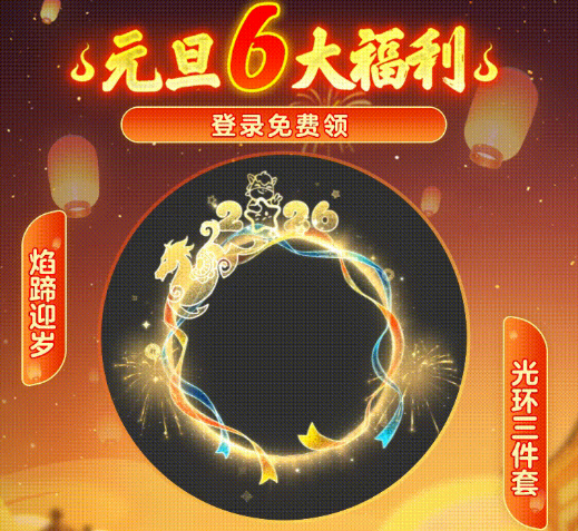 第一波:限定外观直接领,新年就要闪亮亮这次最香的就是免费送!完成简单打卡,2026新年限定孢子五选一,连击王、小金砖、超级巨星、吞噬王、2026,只有这次可以得到,个个都是绝版。2026年限定光环三件套“焰蹄迎岁”,它不只是好看,更是一种新年情怀。鎏金马纹,寓意着新的一年马到成功、一往无前。拥有它,就像是给自己新赛季的征程,加了一份专属的仪式感。还有新年的永久头像框、留言气泡、主页背景,新年排面直接拉满。