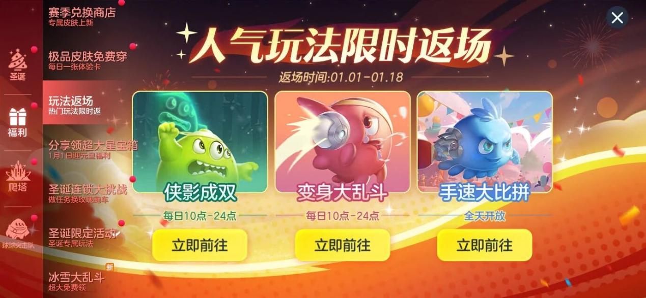 玩累了排位?别急,经典玩法限时回归——“侠影成双”、“变身大乱斗”、“手速大比拼创意版”等模式再度开放,让你重温最初的花式操作与爽快体验!