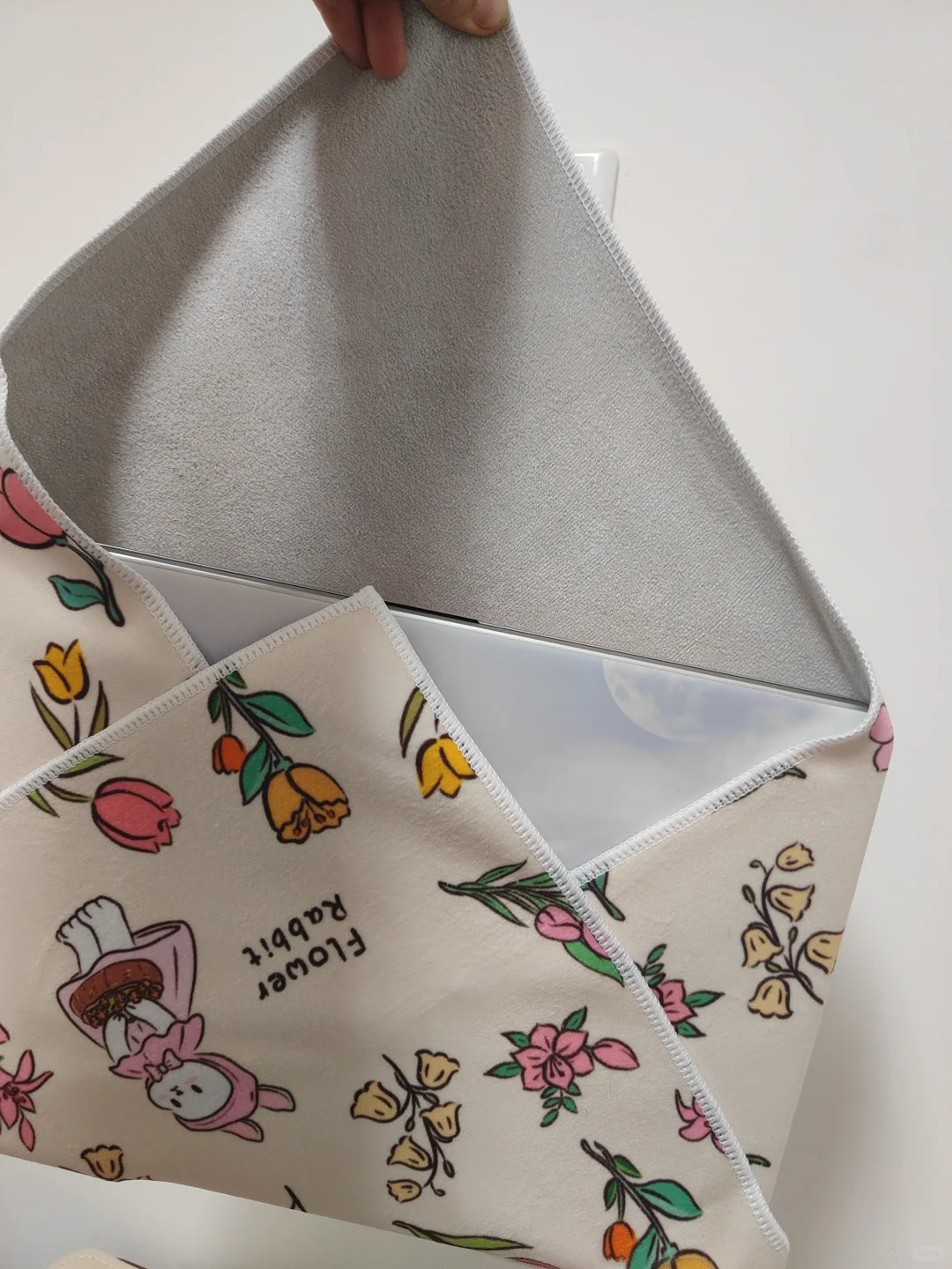 然后还可以根据电脑大小折叠的严丝合缝。被包裹严实的笔记本电脑,放在家里就不怕被不小心刮花了。