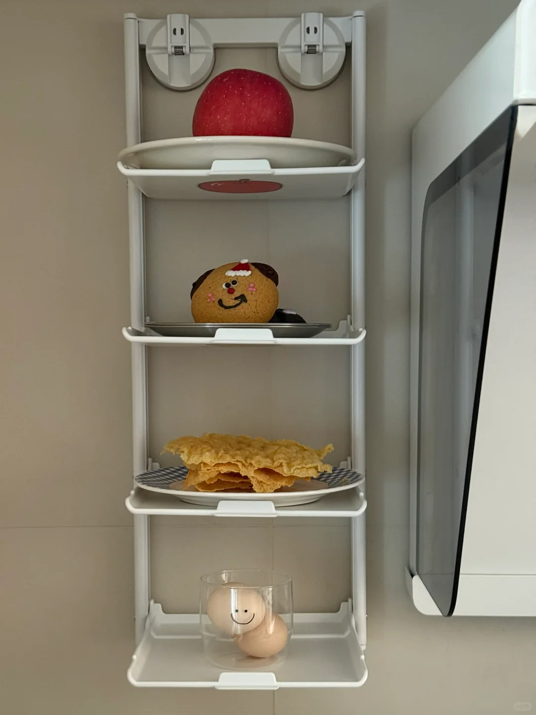 厨房台面的收纳空间有限,在朋友的推荐下,我买了一个备菜架,话说真的好用啊,可以把它固定在墙上,