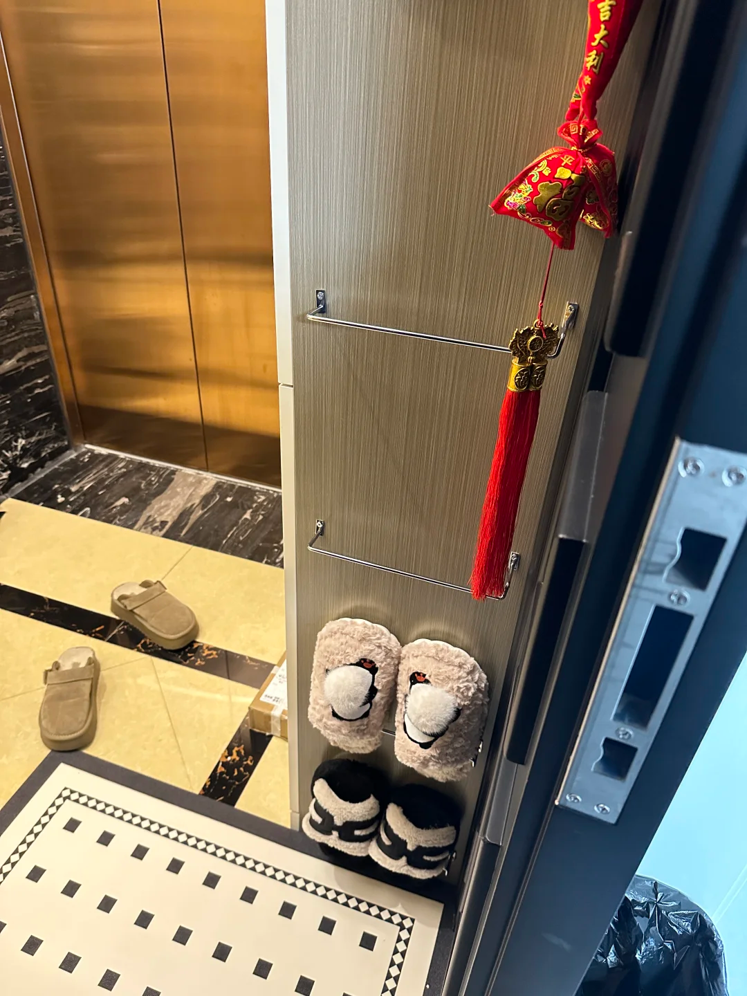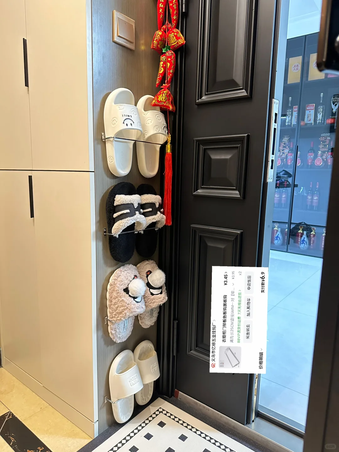 现在都特别流行把拖鞋放在墙上收纳,网上有卖那种上墙的收纳支架。