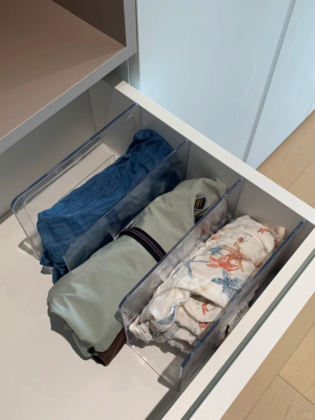 之前我们就是把那些小件衣物直接放在衣柜的抽屉里,打开抽屉就乱七八糟的。而且找的时候还特别麻烦,翻来翻去也找不到自己想要的。