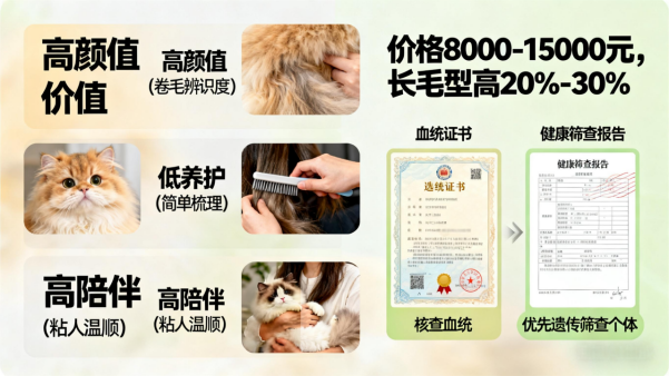 品质鉴别:体型需符合大型猫标准,骨架粗壮,肌肉紧实;被毛必须为双层长毛,耳尖有簇毛,尾巴蓬松粗大;眼神明亮无分泌物,鼻腔湿润,肛门周围干净;性格温顺,被抱起时无剧烈挣扎,叫声柔和。