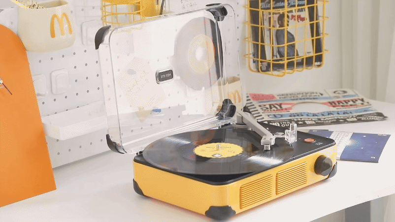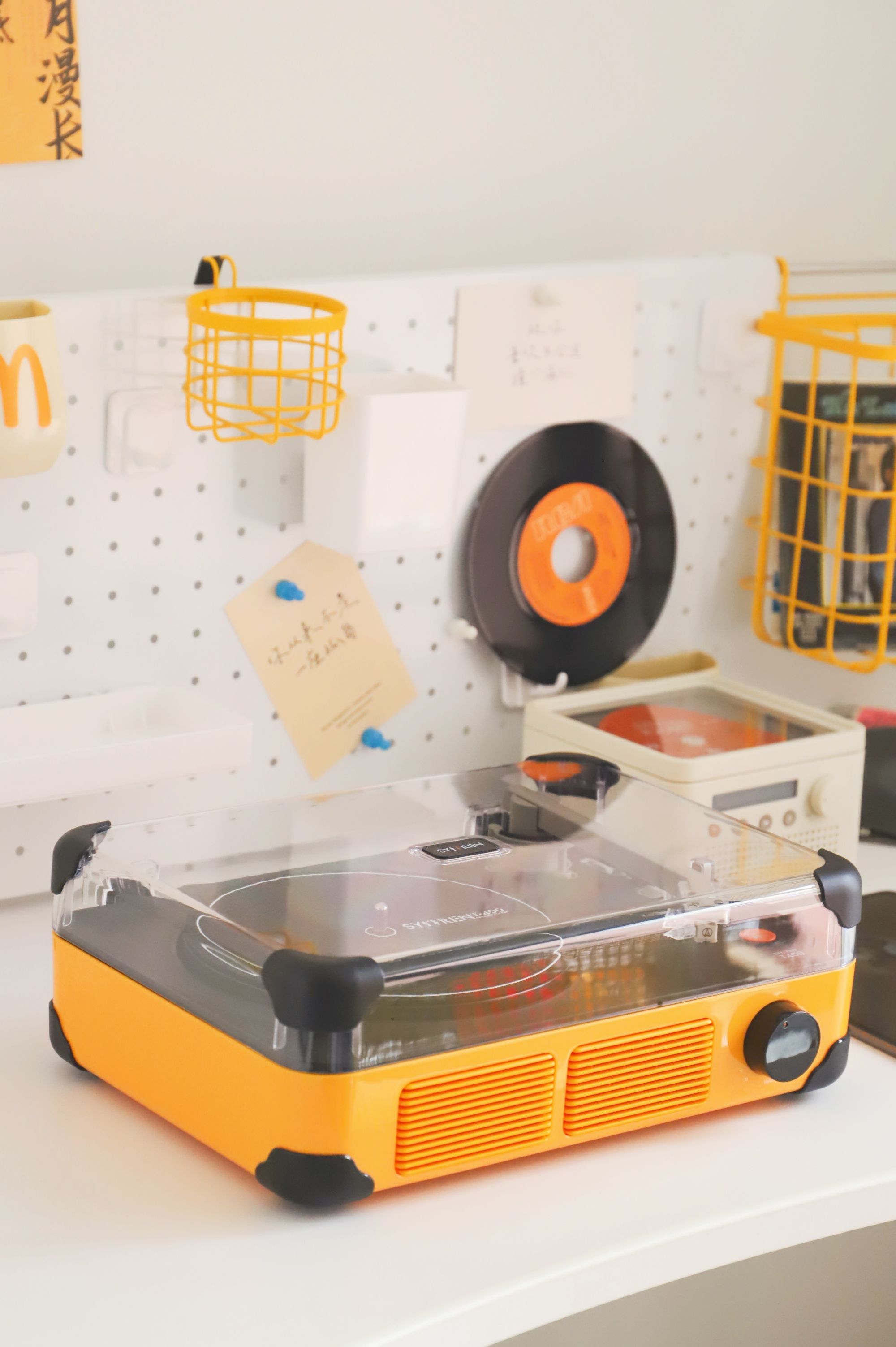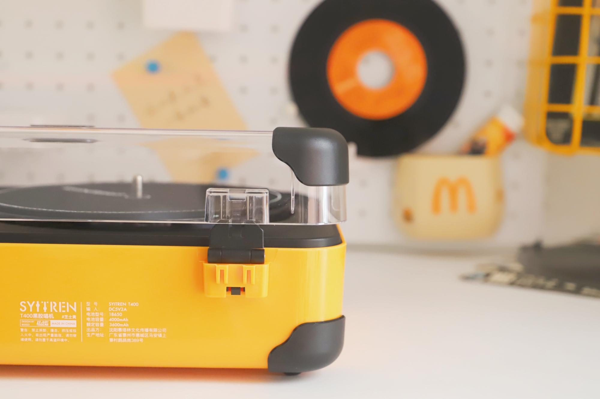 初见赛塔林T400黑胶唱片机,就被其独特的外观设计所吸引。唱片机被巧妙地设计成一个时尚箱包的样子,上盖为透明防尘盖,既美观又实用,可以有效防止了灰尘对唱片的侵扰。芝士黄的主体色彩搭配边角的黑色胶条,既时尚又不失复古韵味,让人一眼难忘。这样的设计不仅符合年轻人的审美,也彰显了产品的独特个性。