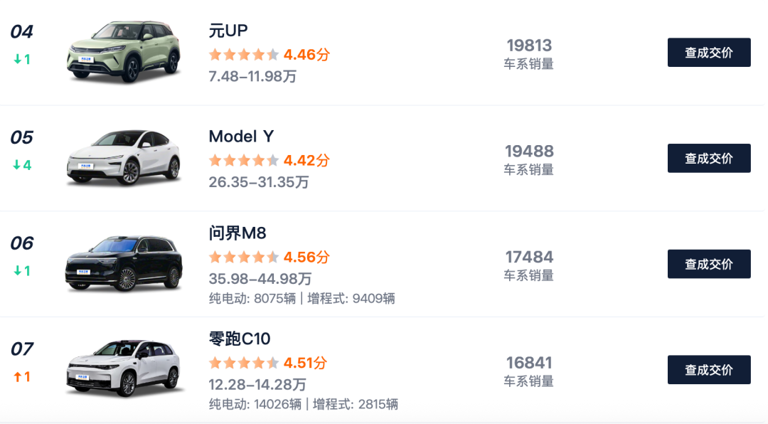 特斯拉Model Y之前一直都是新能源SUV销冠,10月份跌下神坛让人有点意外。Model Y定位为一款中型纯电动SUV,大家口中的“大鼠标”,这次被国产车超越,可见大家对国产新能源认可度逐步提高,Model Y长宽高分别为4797*1920*1624,轴距为2890,长续航版本CLTC最高可达821公里,零百加速最快可达4.3秒,这样的续航里程加上动力表现可以说非常出色了,再加上“三电”(电池、电机、电控)同样也非常出色,消费者对口碑及认可对较高,尽管内饰做工不够精致,但其他方面做的确实挺强的,跟着大家买”容错率“较低,你们觉得它会再次登上销量宝座吗?