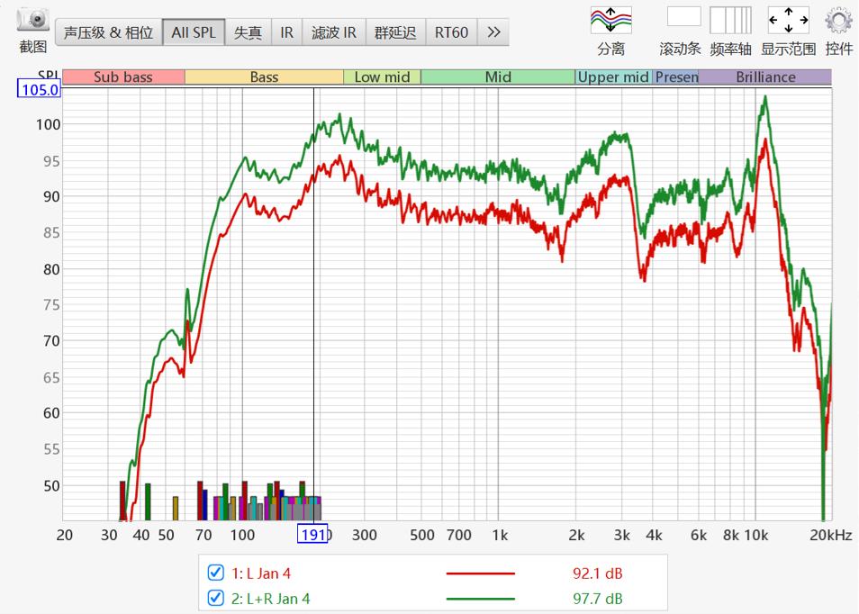 全频段的表现都还不错,低中高频均衡,实际试听也是如此,音箱澎湃有力、细节丰富且声场开阔的优质听感。人声部分清晰通透,中高频表现亮丽不刺耳,低频也有不错的下潜力度。