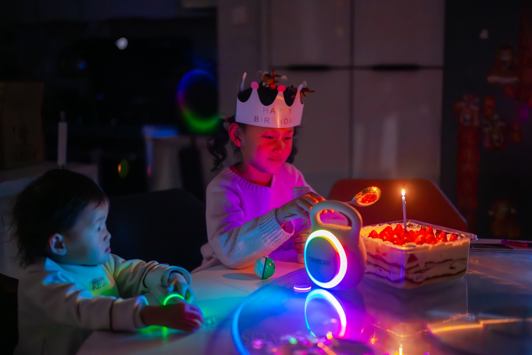 实拍如上,确实还不错,灯光亮度刚刚好点亮氛围,柔和不刺眼,对于孩子来说还能额外激发兴趣,看着律动光效有事没事都会说两句话唱两句歌或者怪叫几声,对于还在牙牙学语阶段的3岁小宝来说还有个语言能力激发的作用。