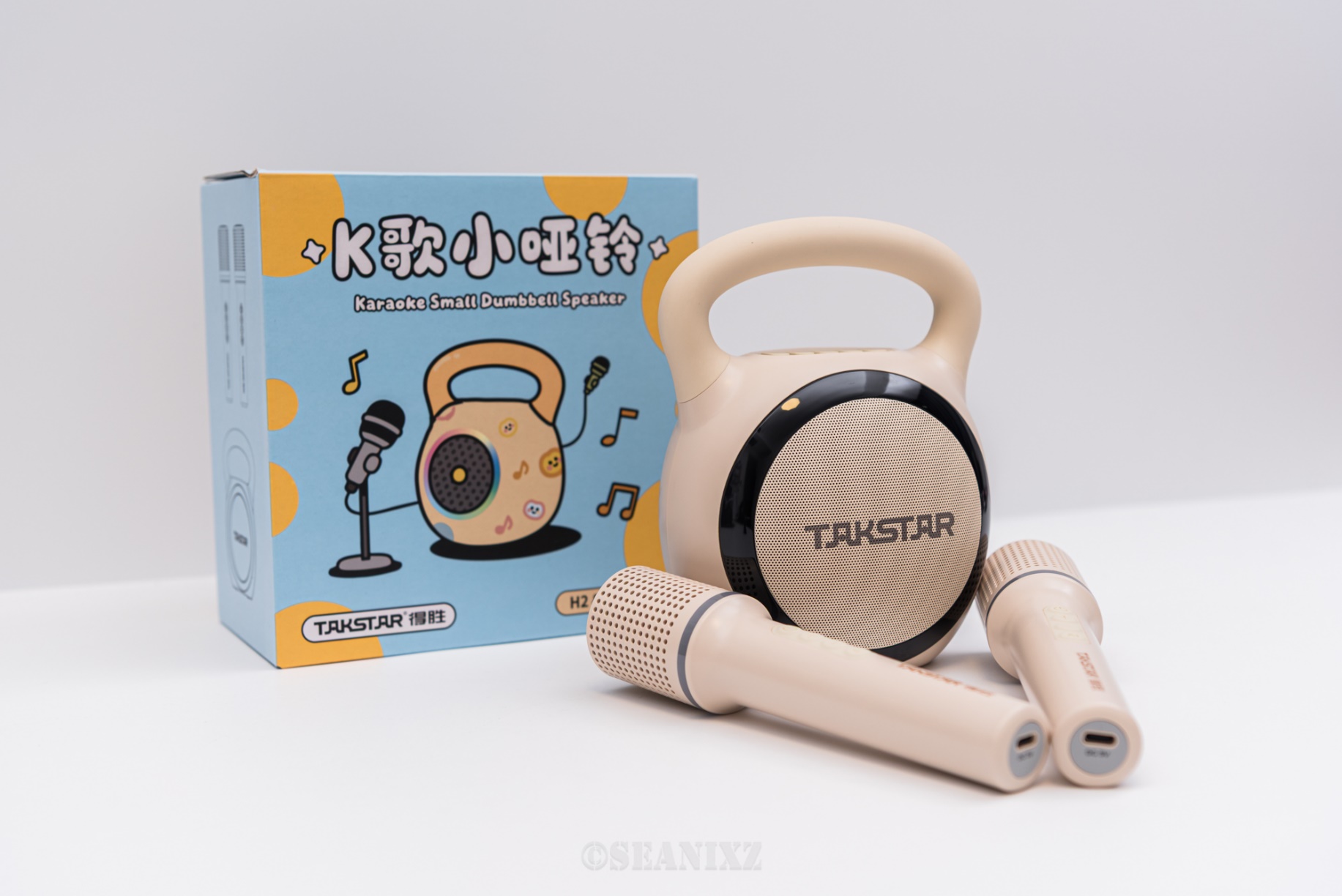 后来看到得胜K歌小哑铃H2,居然还有这种转为孩子设计的K歌小音箱,可爱的造型和专业的素质,确实完美满足孩子的K歌需求,果断入手了,分享一下体验。