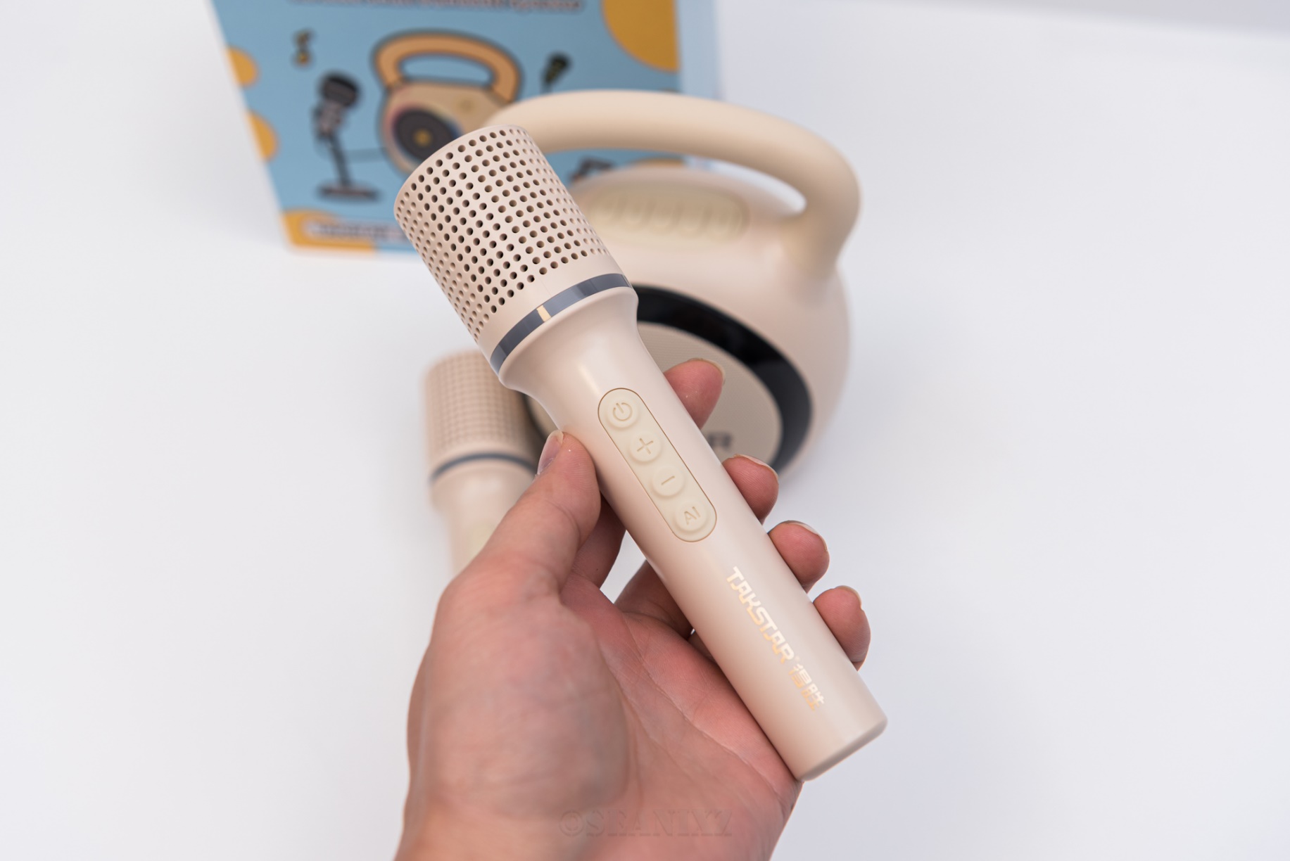 得胜H2的双麦克风配置也非常友好,开机即可自动与音箱完成配对,无需繁琐设置,非常适合孩子和家人娱乐使用。