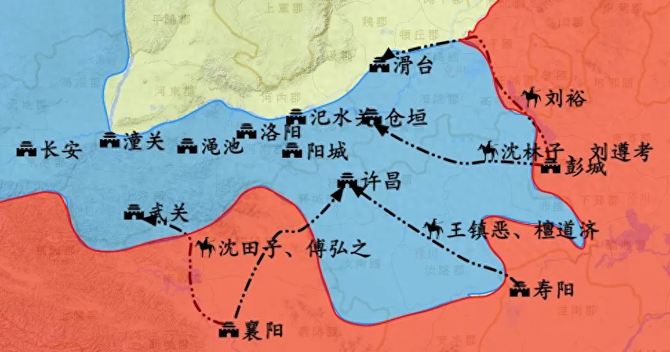 当看到后秦内部连连发生叛乱的时候,洛阳晋军可不会坐看着不动手。本来刘裕的计划是,各路先锋军在杀到洛阳之后,要休整一段时间,待黄河水口完全通漕,刘裕的后续主力大军与辎重粮草全都进入黄河到达洛阳,然后再一同对关中发起全面进攻。但洛阳诸将特别是王镇恶已经按捺不住了,王镇恶本是关中人,他手底下也有不少人是雍州流民,大家都想赶紧风风光光打回老家去。于是他不顾正月的严寒、粮草的匮乏和刘裕的部署,独自率部开出洛阳向西面的潼关冲去。由于秦军大多入关平叛去了,后秦在洛阳以西的兵力非常空虚,王镇恶非常轻松的就攻克了新安、渑池。
