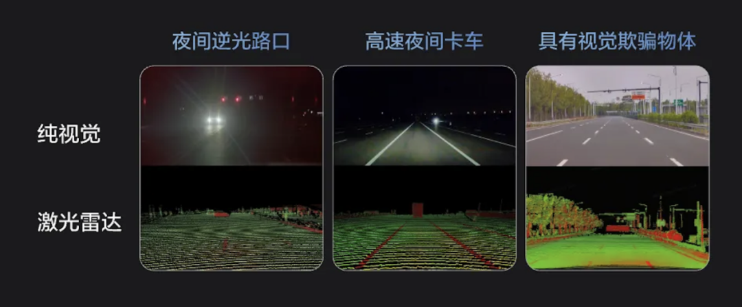 在暗光、逆光、恶劣天气或远距离目标识别等复杂场景下,极端事故极容易发生。目前,纯视觉方案在逆光、低对比度等环境中仍有明显局限,而激光雷达能够在弱光乃至完全暗光条件下提供更稳定、精准的目标探测与环境感知。它真正解决了人类驾驶者难以应对的隐患——能在短短0.1秒内迅速生成最优避障方案,比一次眨眼更快。