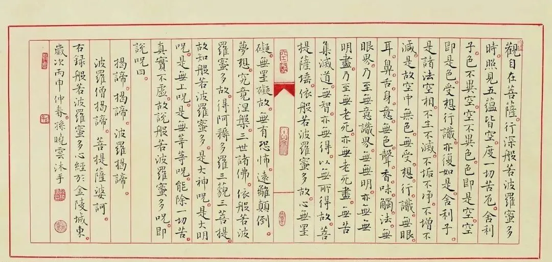 孙晓云小楷《心经》以唐楷为根基,融合柳体骨力与《灵飞经》灵动,形成方折细劲、疏密相间的独特风格,在法度严谨中实现传统气韵与现代审美的平衡,成为当代书法回归经典的典范之作。