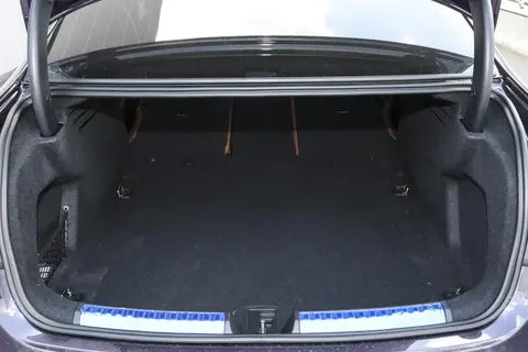 空间表现可圈可点,车身尺寸4908/1860/1442mm,轴距2969mm,为内部空间奠定基础。身高188cm体验者坐前排,腿部活动充足,戴棒球帽头部无压抑感。针对轿跑后排头部局促问题,通过三处优化解决:一是C柱三角窗前移,采用超薄高强度钢拼焊拓展空间;二是后排坐垫加厚18mm且前端后移5cm,承托大腿同时避免膝盖顶前排;三是全景天窗后排头顶设磨砂遮光带,通透防晒且防紫外线。后备箱常规容积411L,开口宽大,可容纳2.4米碳纤维冲浪板,可选装脚踢感应尾门;地板下为双层储物格,上层干湿分离工具包,下层配备12V电源与隐藏挂钩。车内储物布局合理,中控台镂空区域可立放物品并集成充电接口;前门双层储物格,后门斜插式杯架,扶手箱上下两层设计,满足多样储物需求。