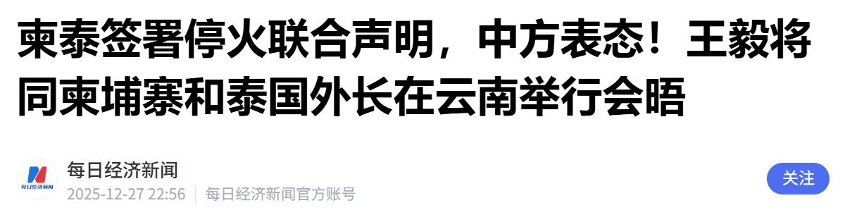 泰柬刚宣布停火,中方就请双方来中国云南会面,王毅外长亲自主持,这速度,不是巧合,中方也已经表明了态度。
