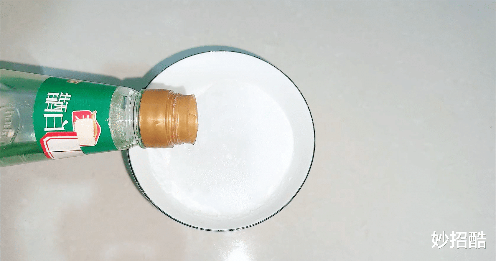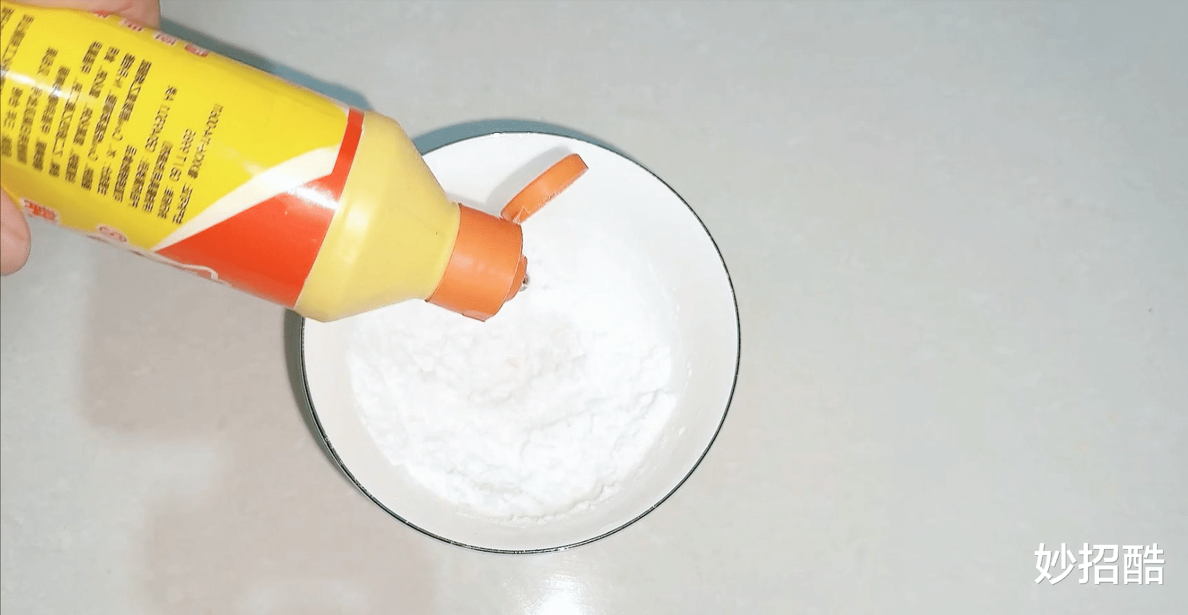 最后倒入半碗白醋,因为白醋能软化顽固油垢、还能去除异味。跟小苏打接触会发生反应,产生大量泡沫,这些泡沫的去污效果特别棒。
