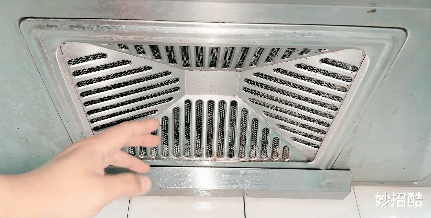 清洁完成油烟机表面之后,油烟机内部滤网也有很多油污。