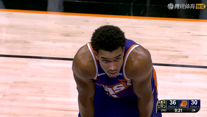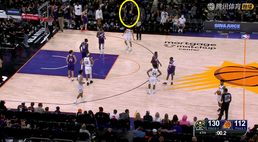 暂停回来,太阳被扣了3分,似乎是阿伦一个三分投篮踩线了,太阳6-0开局,早点扣掉的话,掘金也就不必喊这个暂停了。