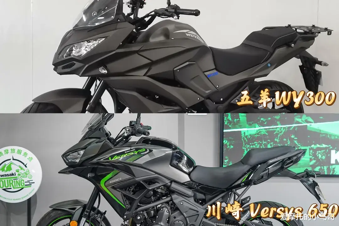 第一次看到五羊WY300的时候,就有种似曾相识的感觉,因为它这“眼角都开到后耳根”的设计风格我曾在心心念念的川崎Versys异兽650身上见到过。然后我还特意把他俩放到一起对比了下,果然很像。