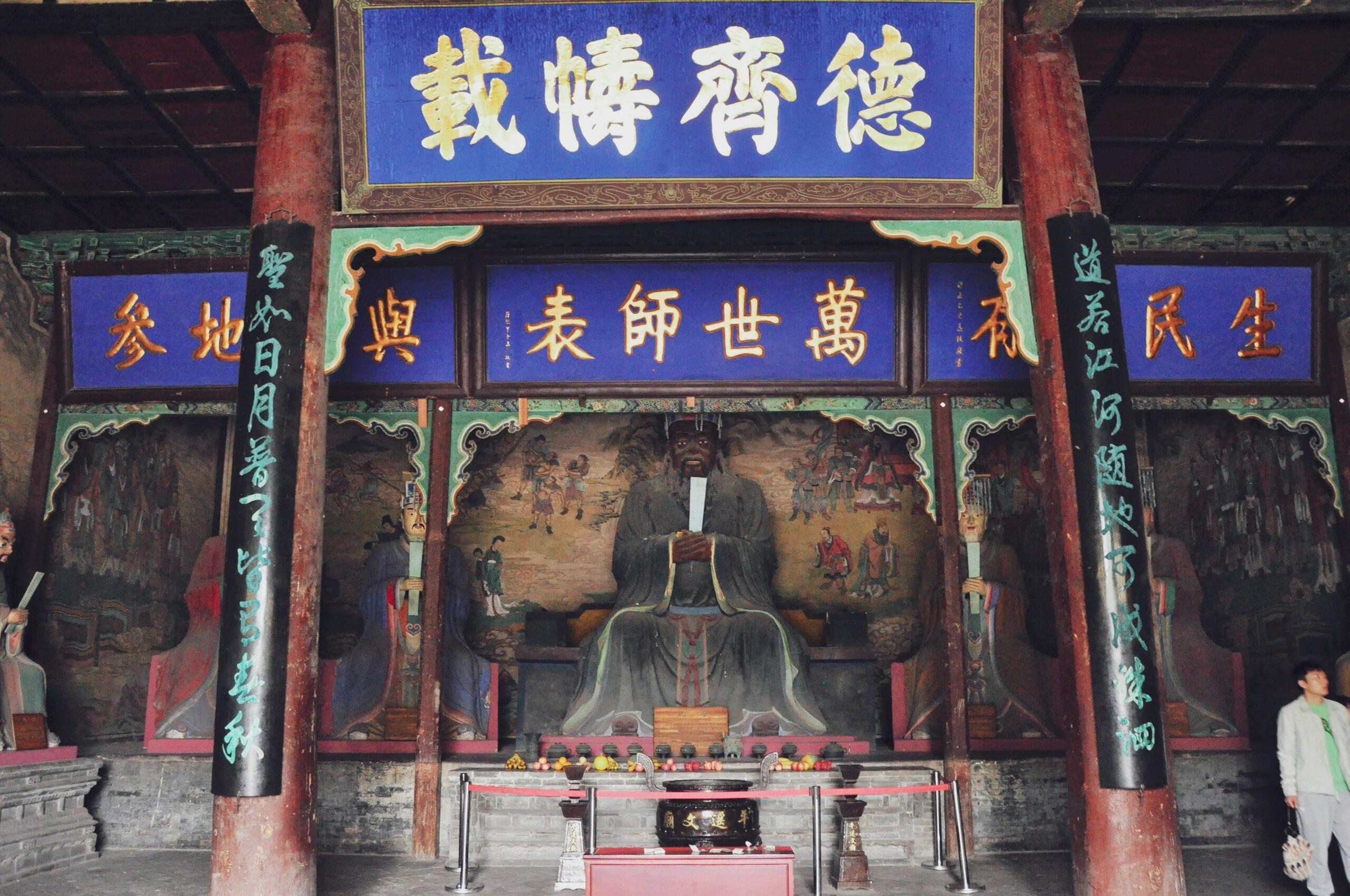 离开时,巷口的导游正拿着喇叭喊:"往前走到日升昌票号,那才是平遥的精华!"一群游客浩浩荡荡地涌过去,没人回头看一眼这藏在深巷里的金代殿宇。可就在这时,阳光穿过大成殿的窗棂,在地上投下斗拱的影子,那些影子随着日头慢慢挪动,像1163年的工匠们,还在一步一步丈量着时光。你忽然明白,所谓"万世师表,一以贯之",或许不只是说孔子的教义,更是说这些沉默的建筑——它们带着每个时代的印记,跌跌撞撞地走到今天,本身就是最生动的传承。