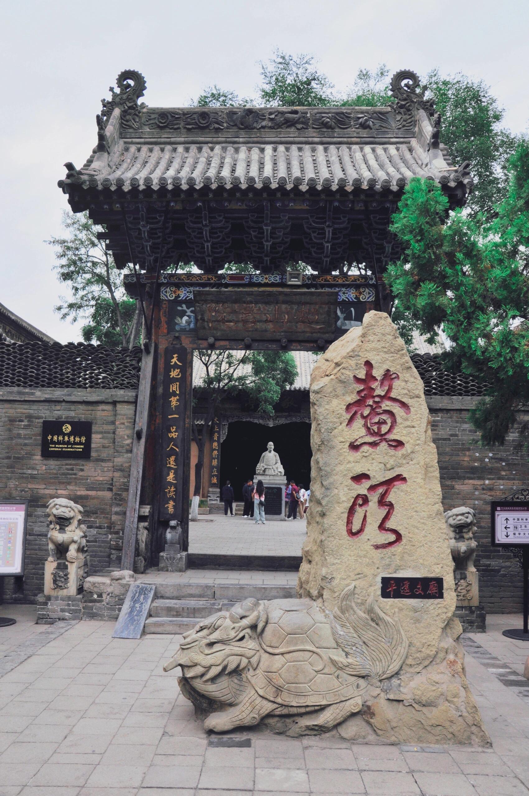 平遥古城的南大街上,人潮总像被无形的手推着往前涌,镖局的旌旗在风里招摇,醋坊的酸香漫过青石板路,谁会留意拐进那条僻静巷弄时,朱漆大门上"文庙"两个字已经褪成了淡金?跨进门槛的瞬间,喧嚣像被门槛切断了似的,只剩下檐角铁马偶尔叮当一声,倒让院子里的古柏显得更沉默了。