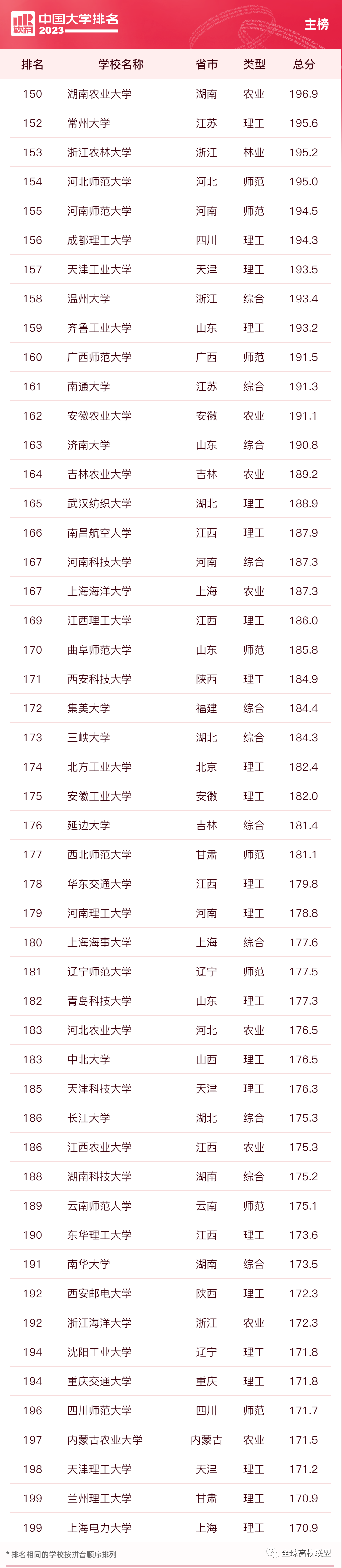 第二轮“双一流”新晋选手湘潭大学较2022年上升14名,位列全国第92名,大连海事大学上升11名,排在第99名。