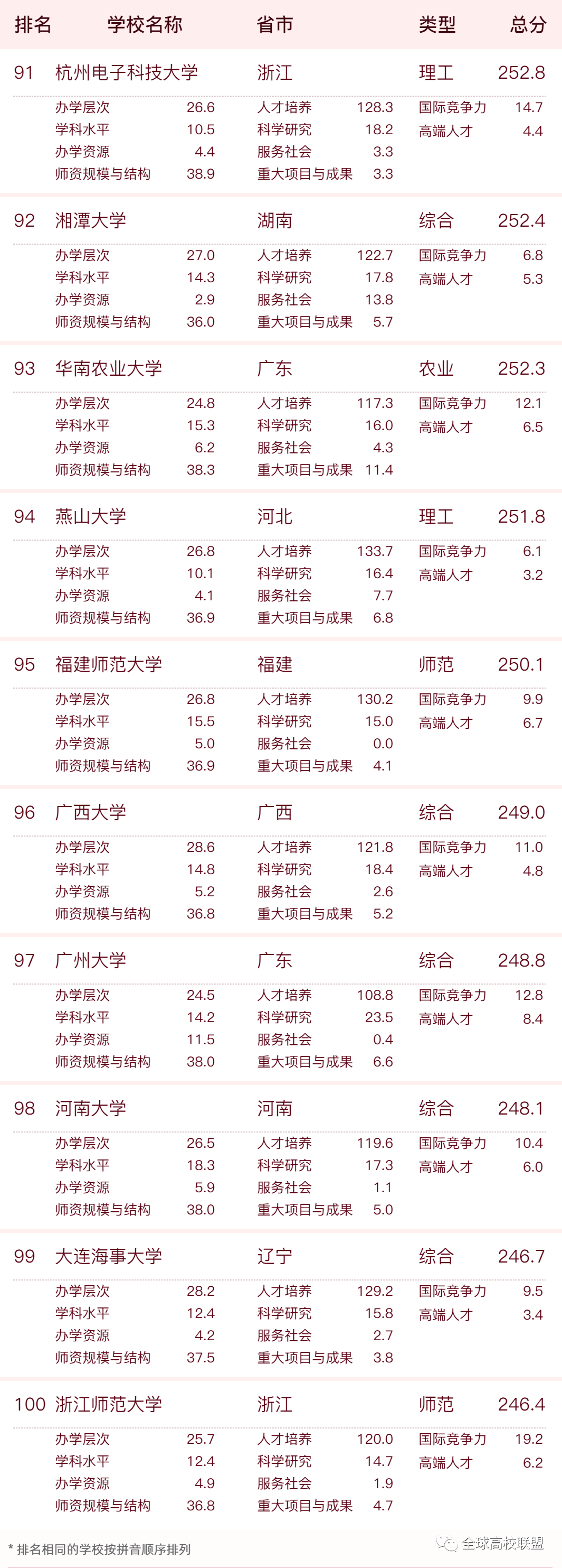10所非“双一流”高校凭借强劲的综合实力跻身百强,其中深圳大学(68名)、浙江工业大学(70名)、江苏大学(78名)、扬州大学(81名)、南京工业大学(85名)位列前五。