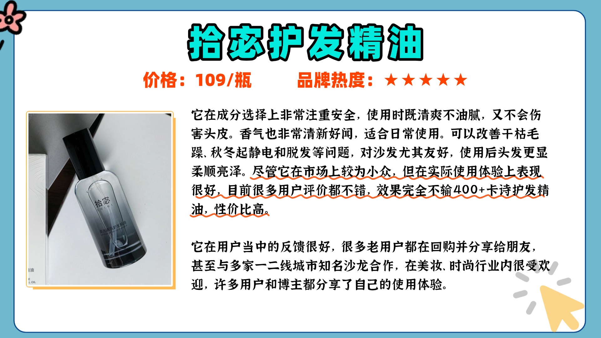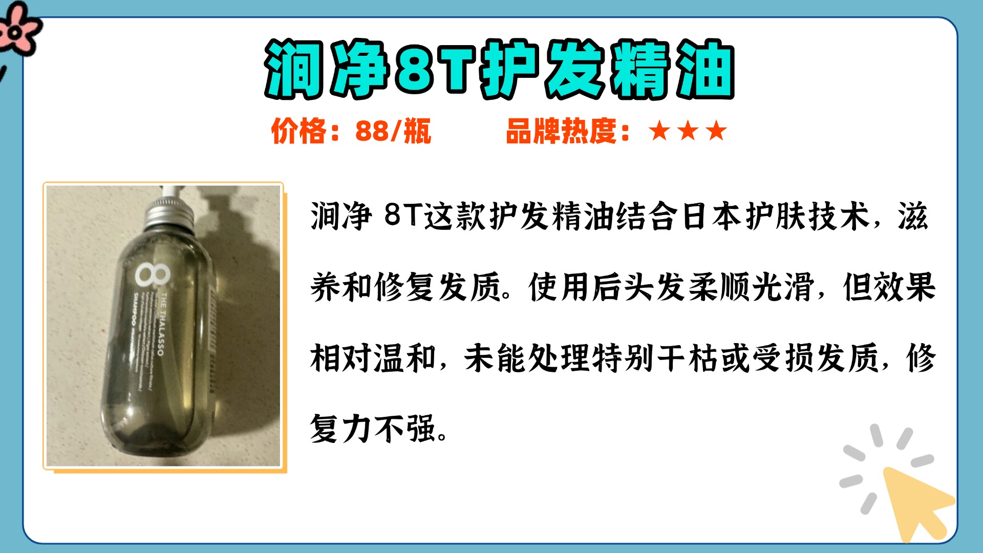 很多人认为好用的护发精油一定很贵,但其实很多价格亲民的精油,同样有着很不错的效果。选择护发精油时,价格不一定是决定性因素,关键还是看成分和适合自己的发质。很多平价的护发精油,往往含有天然植物成分,如摩洛哥坚果油、椰子油等,这些成分能够深入滋养发丝,修复干枯毛躁。对于干枯发质的人来说,选择一些滋润型的护发精油能帮助改善发质。而且,护发精油的使用频率不需要太高,一周使用2-3次即可,避免使用过量导致油腻感。总之,性价比高的护发精油是非常值得尝试的,只要选对成分和使用方法,就能让头发变得顺滑亮泽。接下来,我会分享一些我在选购护发精油时的小窍门,大家可以参考一下,选择适合自己的平价好用护发精油!