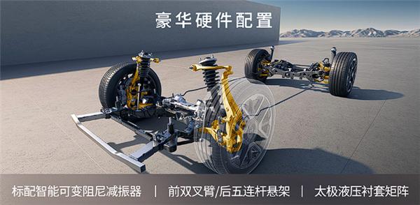 还标配主动降噪技术ENC+RNC,噪音最高降低50%,全车关键部位吸音棉覆盖率超90%,并全系配太极AI底盘,DCC可变阻尼减振器,支持雪地AES、爆胎稳行等。