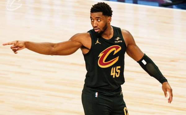 米切尔抓下长篮板的同时趁乱启动后续突破,行进间面对封堵突破路线的华子,使用拜佛后立即加速右路突破直接过掉,杀至篮下后挑篮高打板终结躲避戈贝尔的协防护框。