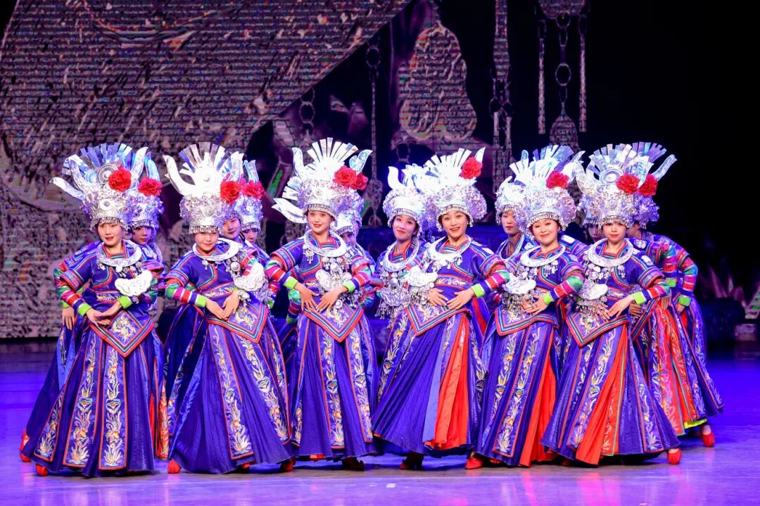 苗族盛装在追光灯下翻涌如瀑,银饰撞击的清脆声响,是大山里传了千年的民族文化遗产!