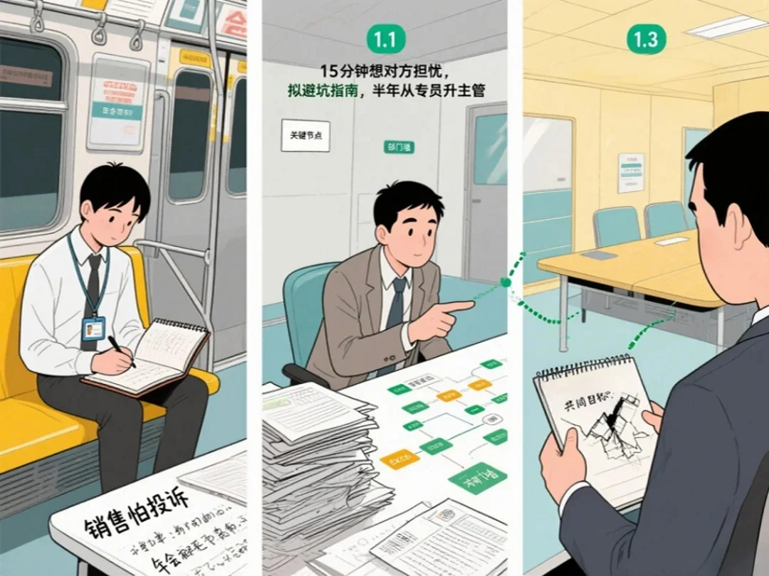 例如:知晓销售惧怕客户投诉,提出要求时便主动表示“我先拟定一份避坑指南”,同事小林立运用此办法,半年内从专员晋升为主管,只因“无人比他更明晰怎样能让各个部门皆感到满意。“