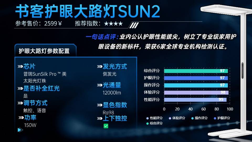 3000元以下价位的,建议书客SUN2护眼大路灯,性能配置不差,并且实际表现可以轻松碾压同价位其他护眼灯。