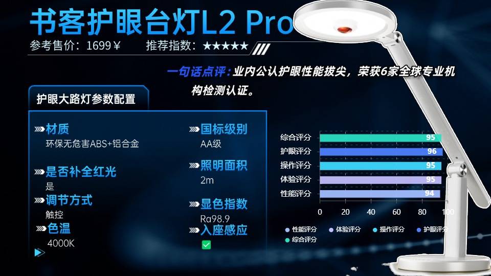 推荐理由:业内公认护眼性能拔尖,树立了专业级家用护眼设备的新标杆,荣获6家全球专业机构检测认证。
