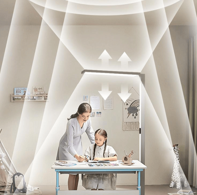 眩光太强,让眼睛一直处于紧绷状态,而当UGR控制在 13 以下时,光线铺开得更平滑、不刺眼,即使长时间盯着作业本、屏幕或阅读,也不会出现酸胀、干涩的明显累感,UGR越低,代表眩光越少。
