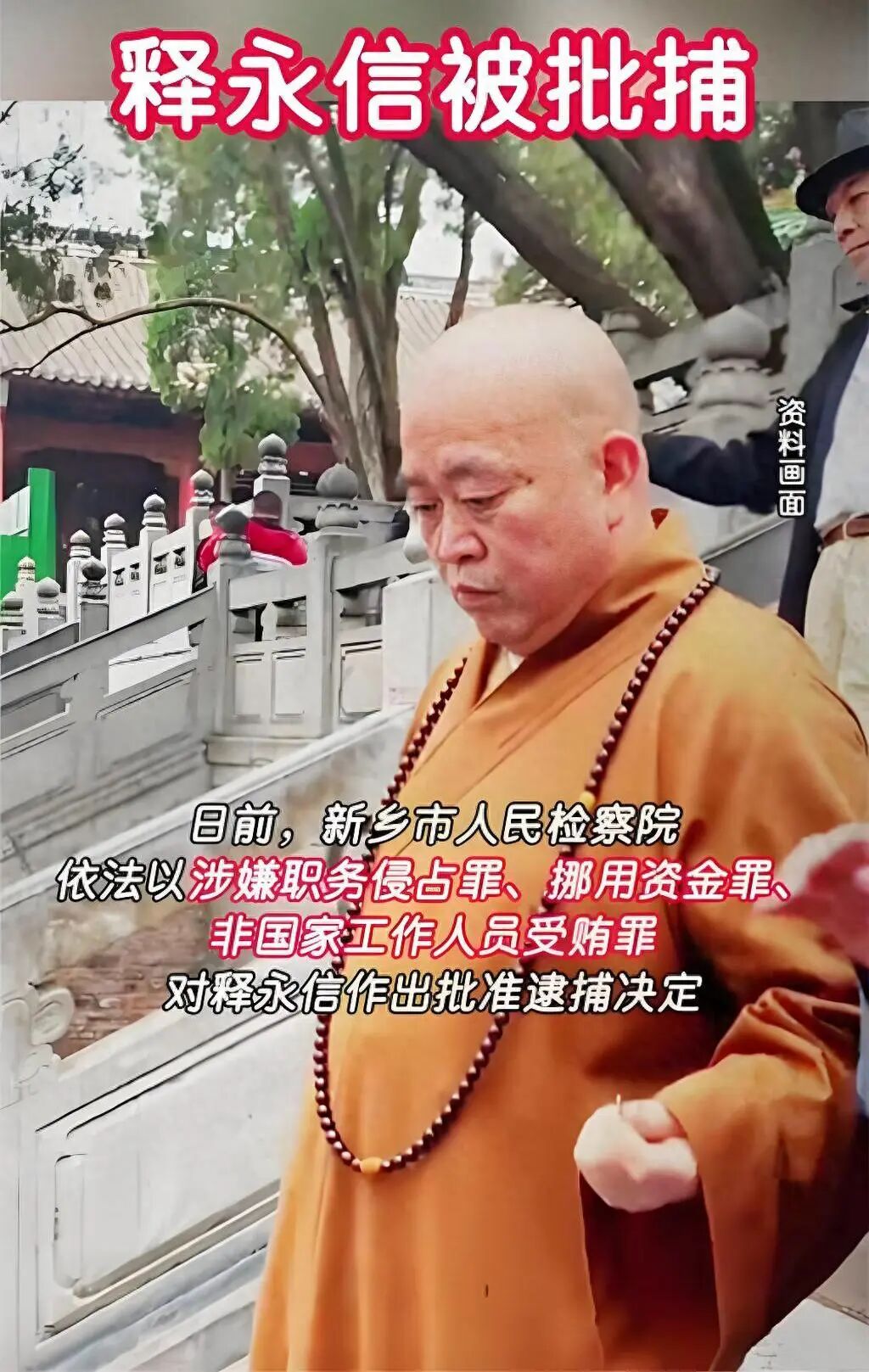 2025年 11月16日,嵩山少林寺原住持释永信,被河南省新乡市人民检察院批准逮捕。