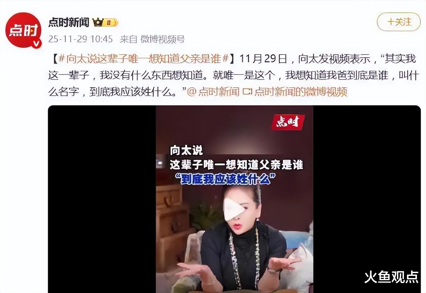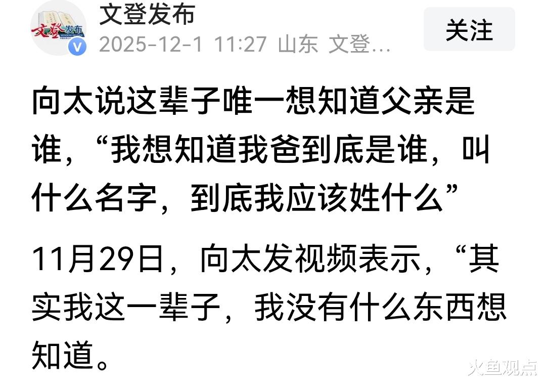 素材来源:文登发布2025.12.1《向太说这辈子唯一想知道父亲是谁“我想知道我爸到底是谁,叫什么名字,到底我应该姓什么”》综合网络,无不良引导,侵权联系删除。