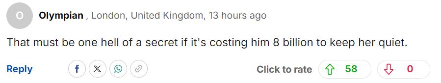 “要是得花 80 亿美元才能让她闭嘴,那这绝对是个天大的秘密啊!”