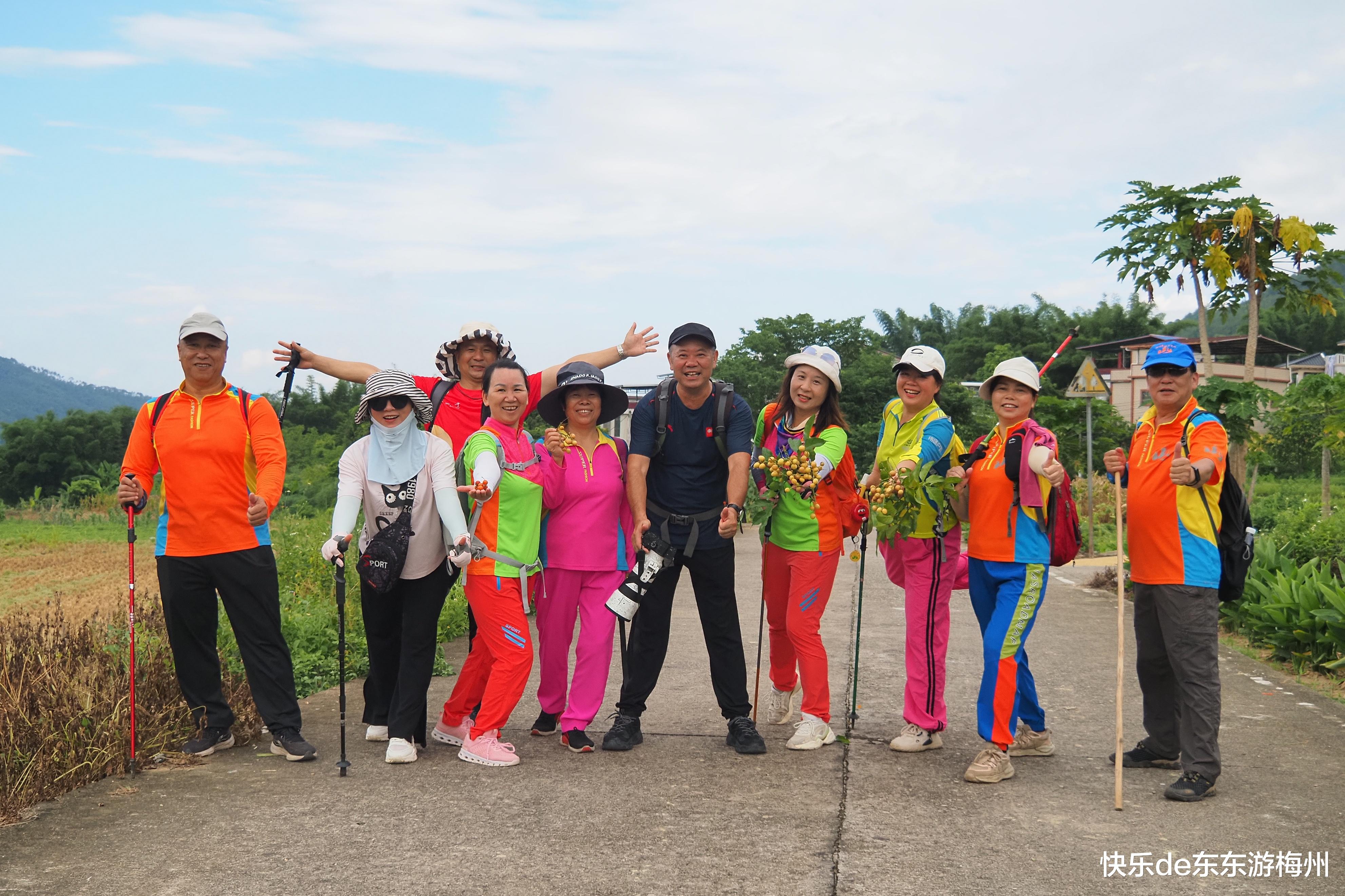 梅县区城东镇书坑村的部分村民也自觉或不自觉地加入了志愿者的行列中,昨天上午,徒步队伍穿过书坑村道时,一位热情的村民手握长柄的摘果神器,主动把3米多高的果树上的黄皮果摘下送给众多的徒友们吃。