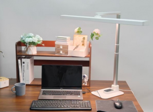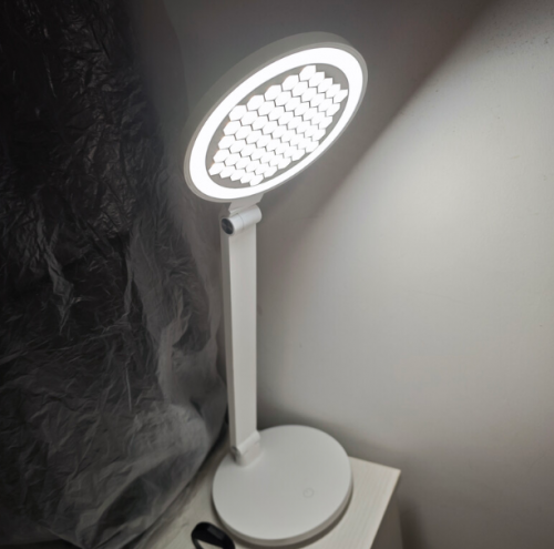 很多普通台灯会堆砌APP控制、彩色氛围灯等花哨功能,实则掩盖核心护眼缺陷。选购时应重点关注光源技术:优先选全光谱灯珠(光谱接近自然光,减少色觉偏差)、红光养眼技术(能激活视网膜细胞活性,缓解视觉疲劳)等实用配置;同时注意光源面尺寸,建议选30厘米以上的发光面,确保覆盖整个书桌(尤其是1.2米以上的学习桌,需选弧形或长条状光源)。