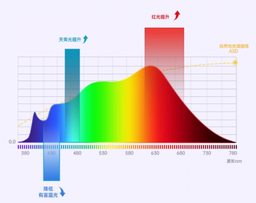 孩子的视网膜感光细胞处于发育关键期,对光线光谱的完整性和安全性要求极高。普通台灯为控制成本,多采用劣质单芯片灯珠,光谱存在明显断层:普遍缺失红光、绿光等关键可见光波段,导致视锥细胞无法接收完整光信号,易出现色觉感知偏差;更严重的是,415-455nm波段的有害蓝光未做任何压制处理,这种蓝光穿透力极强,会直接穿透晶状体到达视网膜,长期照射会导致视网膜色素上皮细胞凋亡,不仅影响视觉发育,还可能诱发黄斑病变等不可逆损伤。