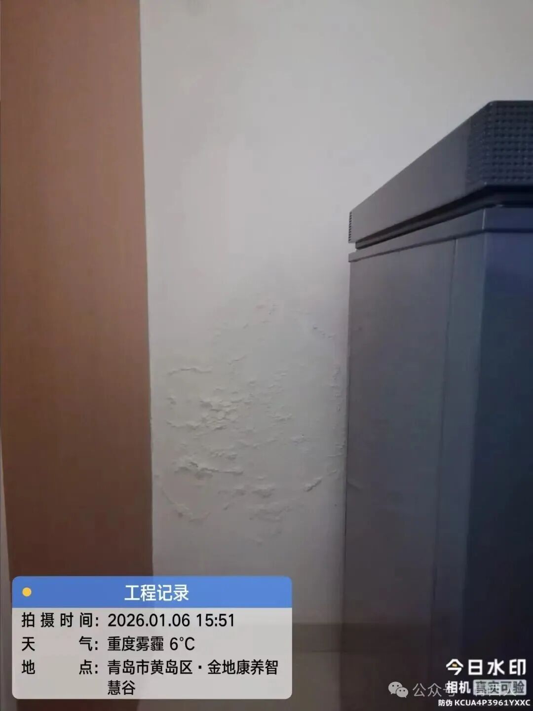 近日,青岛西海岸新区(黄岛区)铁山街道金地·康养智慧谷小区,15号楼1单元多名居民反映,该单元东侧供暖天然气锅炉烟囱,因冷凝水积聚或外部密封不严,导致自1层至16层东侧墙体持续渗漏,多户室内墙面出现大面积水渍、墙皮脱落及霉变现象,严重影响日常生活。