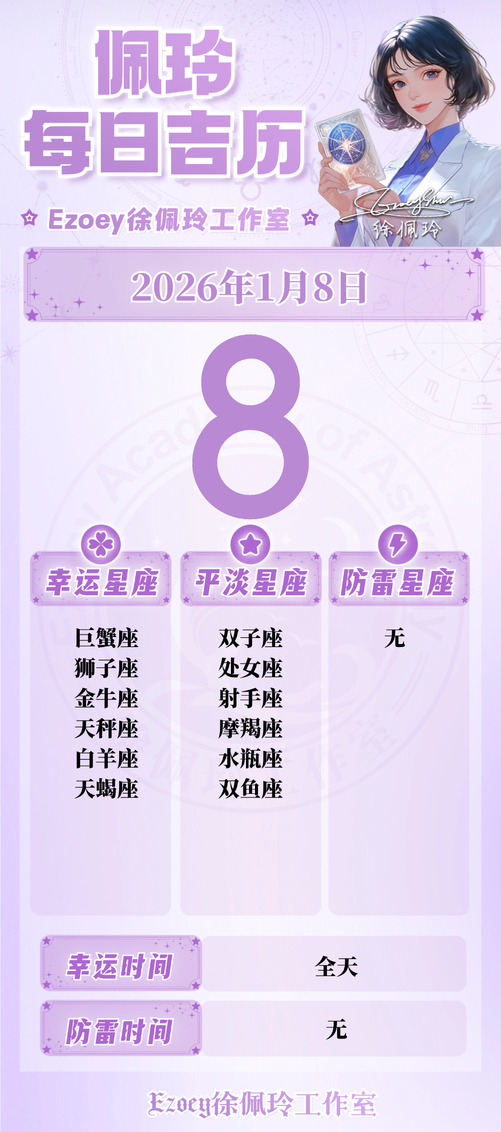 【1.8日播报】乐观助力日 幸运星座:巨蟹座、狮子座、金牛座、天秤座、白羊座、天蝎座——Ezoey徐佩玲26年星座播报