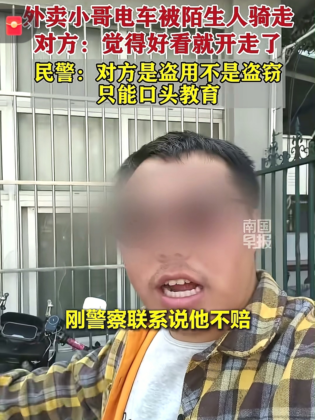耽误了大半天,订单超时被罚,车子也没法正常使用,张先生又气又急,立刻报了警。警方通过监控排查,很快锁定了骑走电动车的男子。可让人没想到的是,面对民警的询问,该男子竟然一脸无辜地表示:“我没偷车啊,就是觉得他这外卖车挺好看的,想骑着兜一圈,根本没打算占为己有。”
