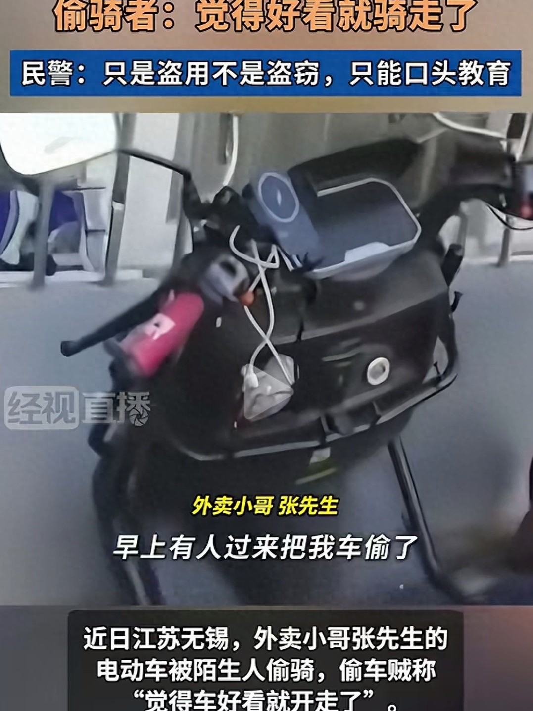 “偷东西不卖就不算偷?这是什么离谱规定!” 近日,江苏无锡一起外卖电动车 “失窃” 案,在网上掀起了轩然大波。外卖小哥的车被陌生男子骑走,对方一句 “觉得车好看,临时骑骑”,竟让案件的定性陷入争议 —— 是盗窃还是盗用?网友们吵翻了天,而车主已经决定通过民事诉讼,为自己讨回公道。