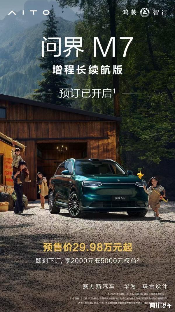 1月10日,全新问界M7增程长续航版正式开启预售,预售价29.98万元起,进一步丰富用户购车选择。即刻下订,立享2000元抵5000元购车权益。
