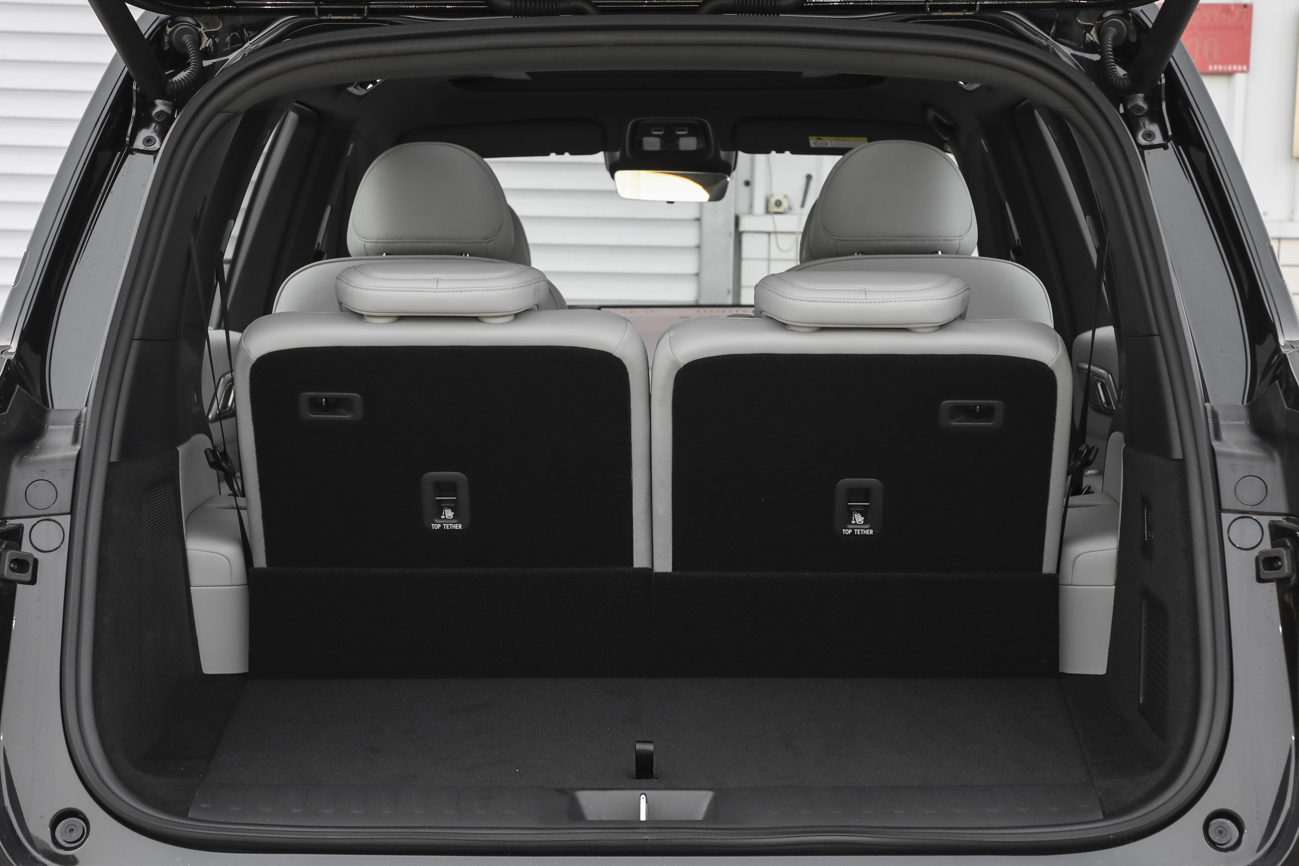 第三排空间表现打破传统大型SUV的局限,实测腿部空间达920mm,即便成年人乘坐也能保持舒展姿态,不会因空间局促产生压抑感。同时第三排配备独立加热功能,搭配电动调节与放倒功能,兼顾每一位乘客的乘坐体验,告别“第三排仅作应急”的尴尬。储物能力方面,后备厢常规状态下容积达427L,足以容纳全家出行的行李、杂物;将第三排放倒后,容积可扩展至1392L,无论是装载大件物品,还是为家庭自驾储备物资,都能轻松应对。全车配备多个USB/Type-C接口,前排功率可达18W,Ultra+及以上版本后排提供60W快充,搭配50W手机无线充电与220V电源插座,满足多设备供电需求。