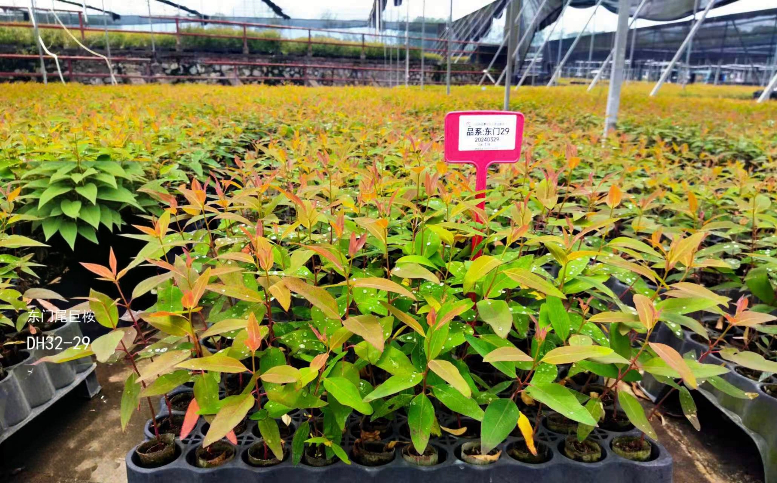 由广西东门林场选育而成的杂交品种,与DH32-29一样,母本为尾叶桉、父本为巨桉,品种优良,侧枝比同系列品种多,耐瘠薄,对桉树枝瘿姬小蜂有高抗性。施肥效果显著,且后期生长量大,平均年生长量可达2.6-3.25吨/亩以上,经济效益也非常不错。