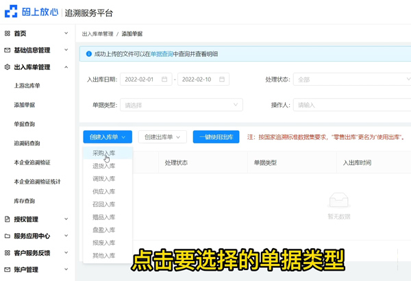 建议操作时先确认业务场景再选择类型,修改后及时核查单据状态,确保追溯数据准确无误,保障药品流通合规性。
